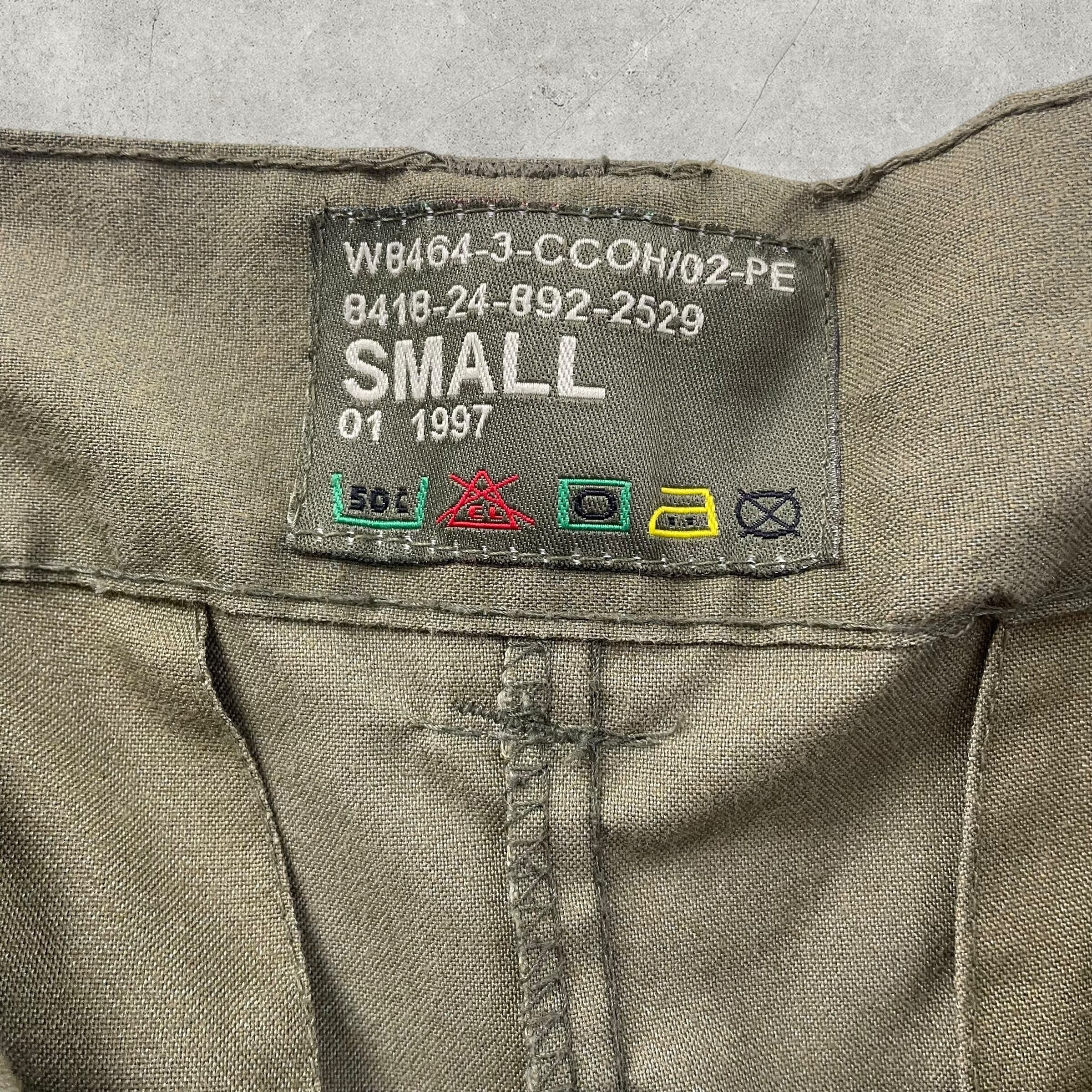 1997年製のカナダ軍ウィンドプルーフコンバットパンツ。フロントとヒップの立体的なカーゴポケットやダブルニー補強、サイドアジャスターなど実用的かつ無骨なディテールが満載。裾はドローコードでシルエット調整可能。