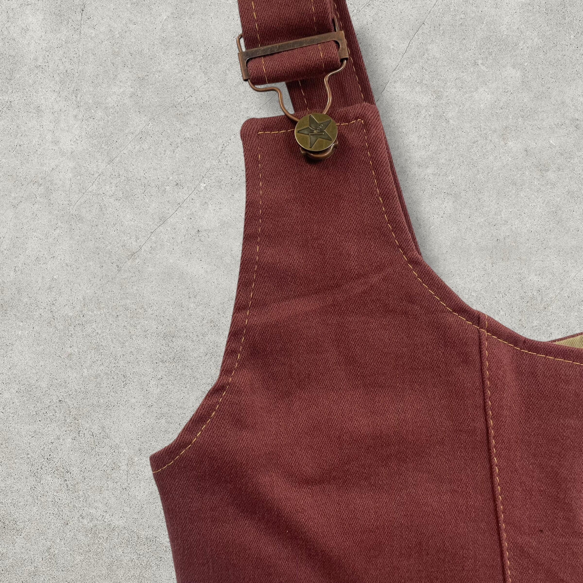 裏は紐仕様で胸元と肩のサイズ調整が可能。
