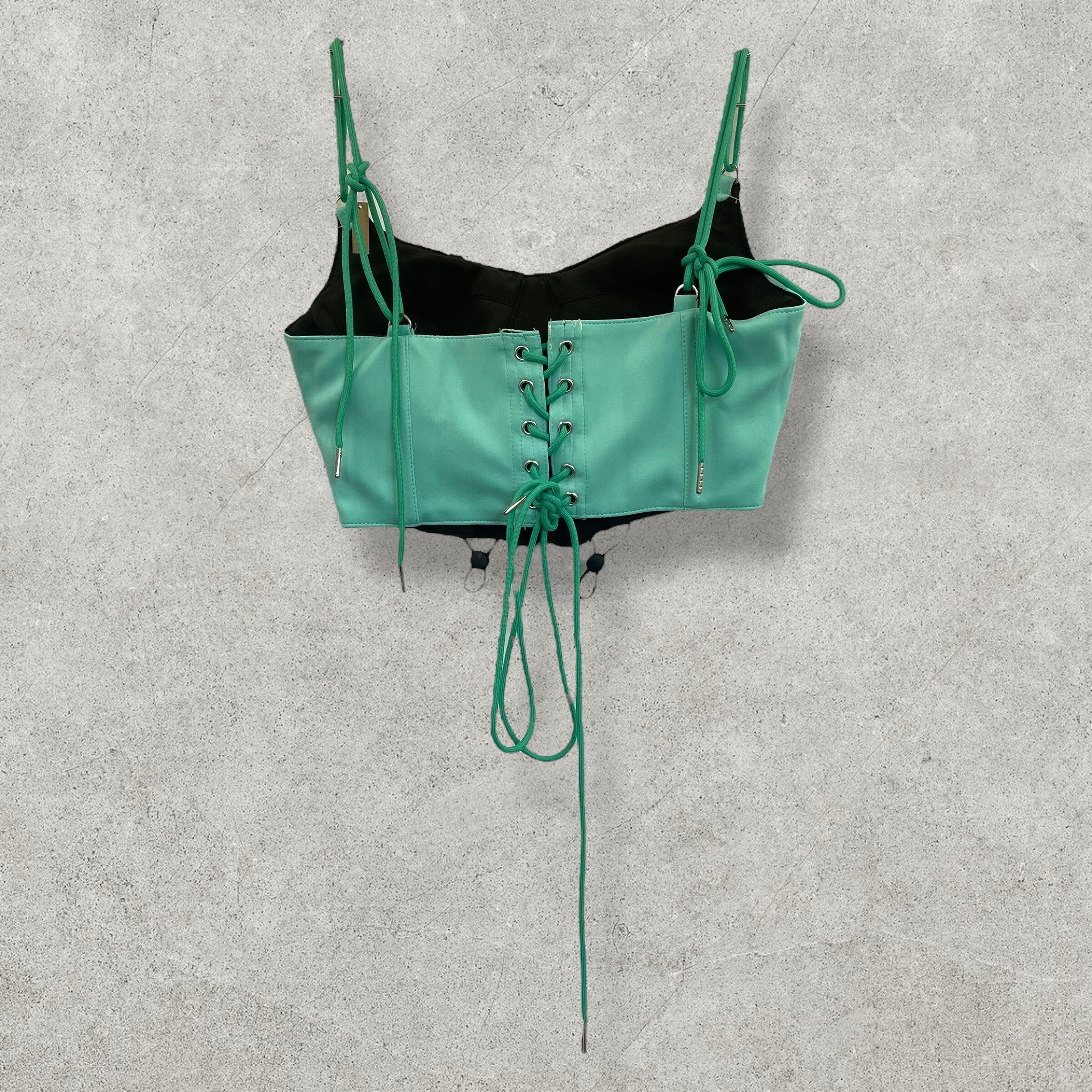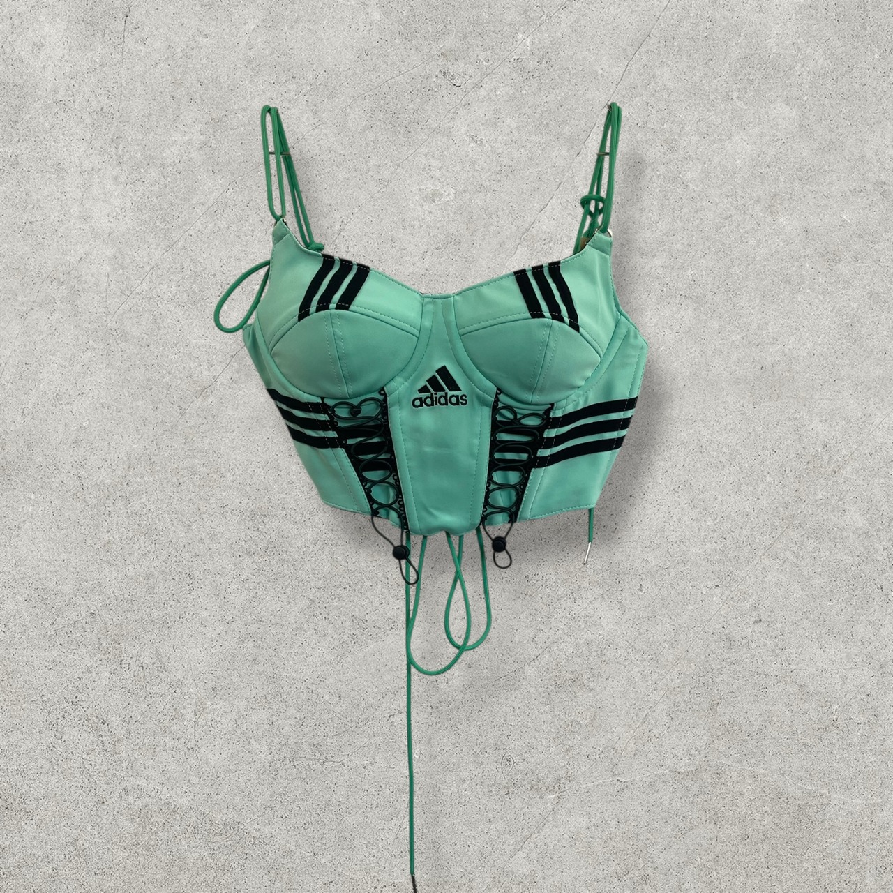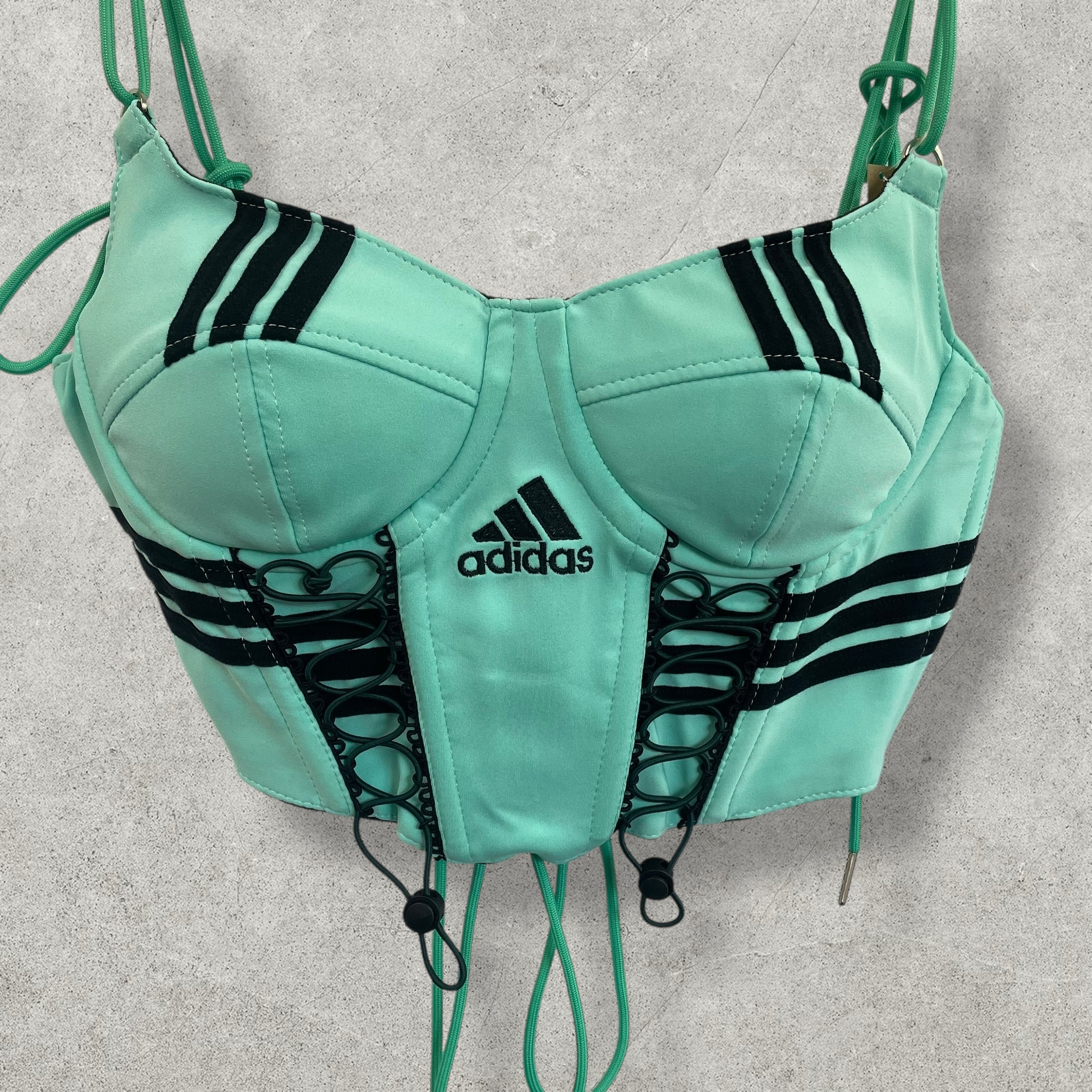 ミントグリーンにブラックの3本ラインが映えるadidasリメイクコルセット。