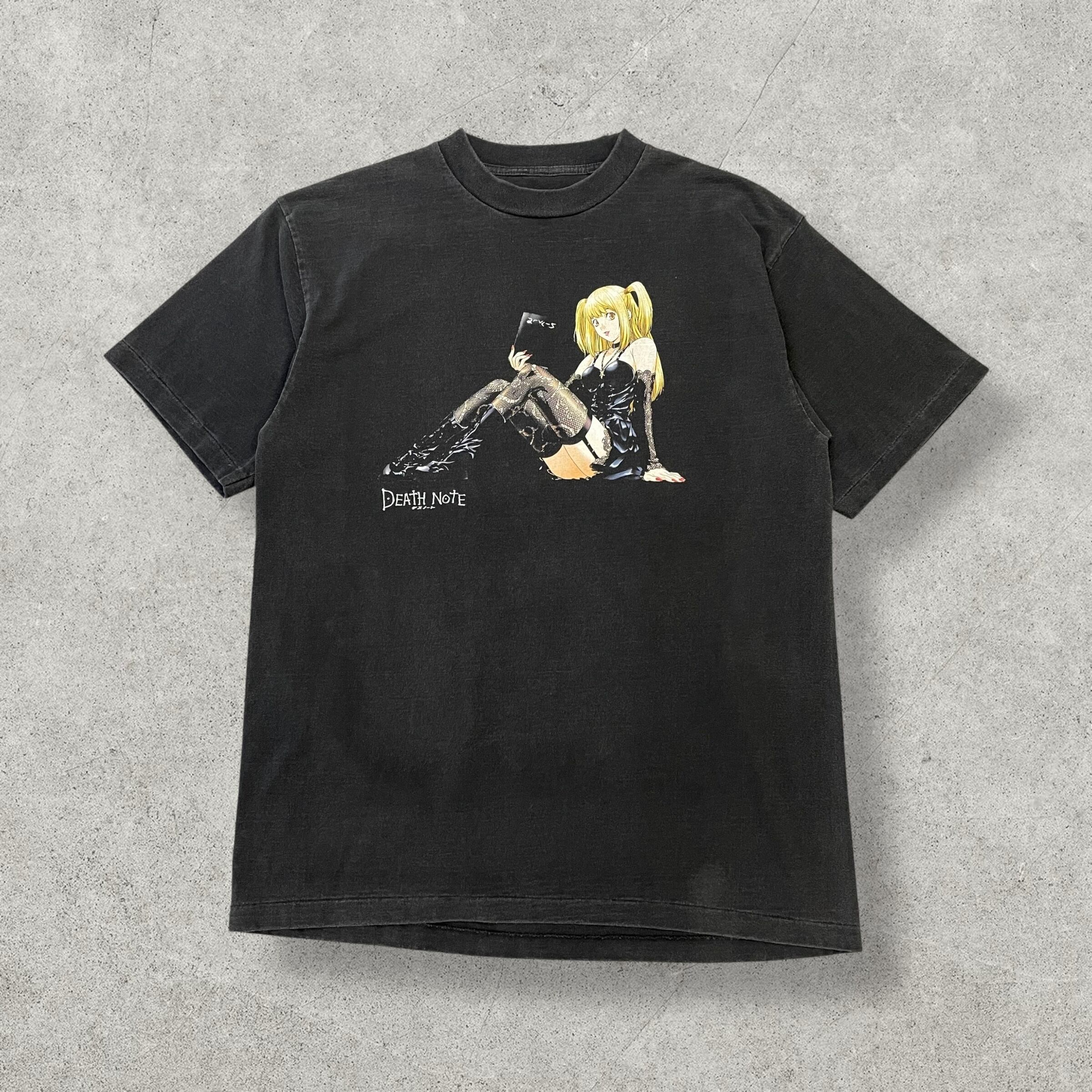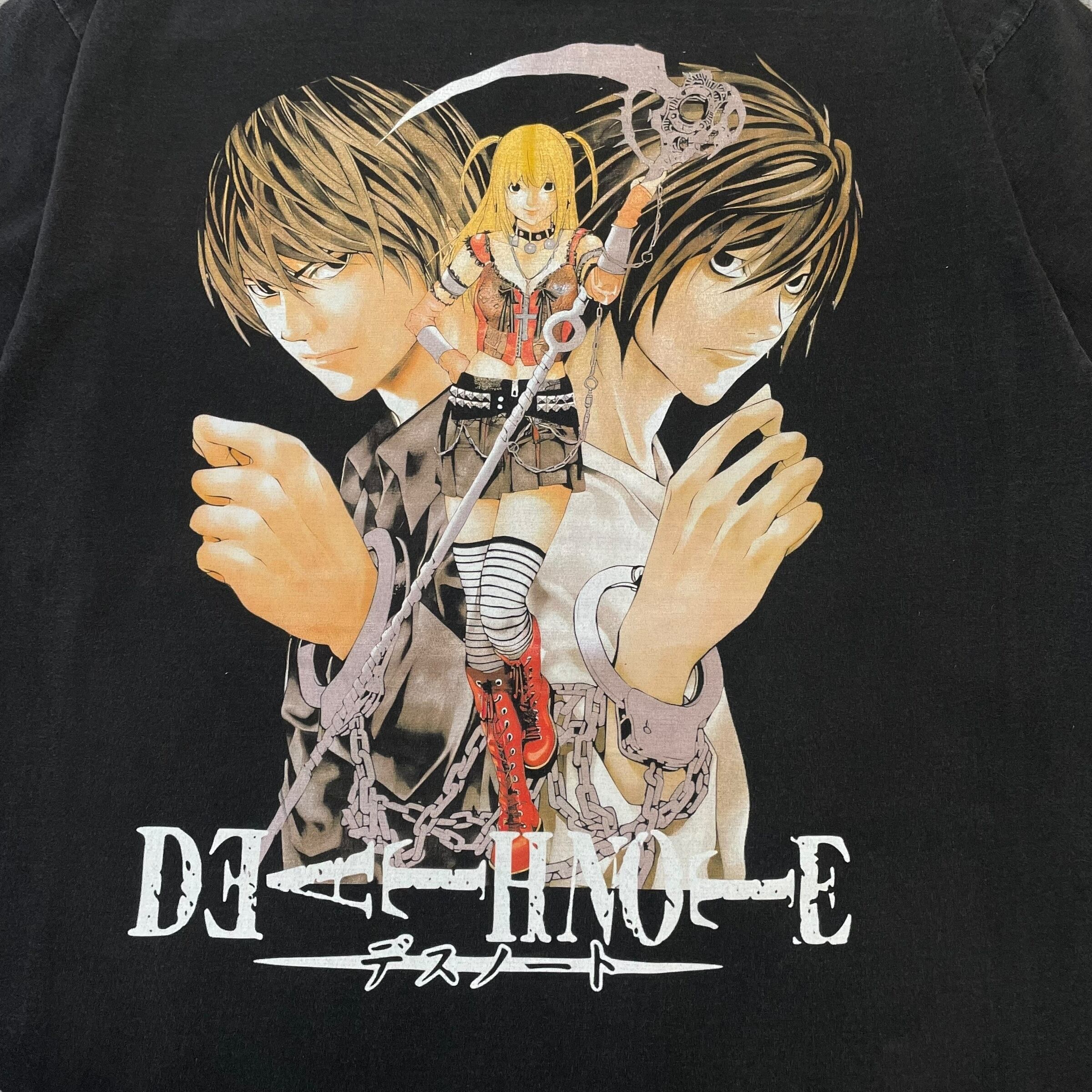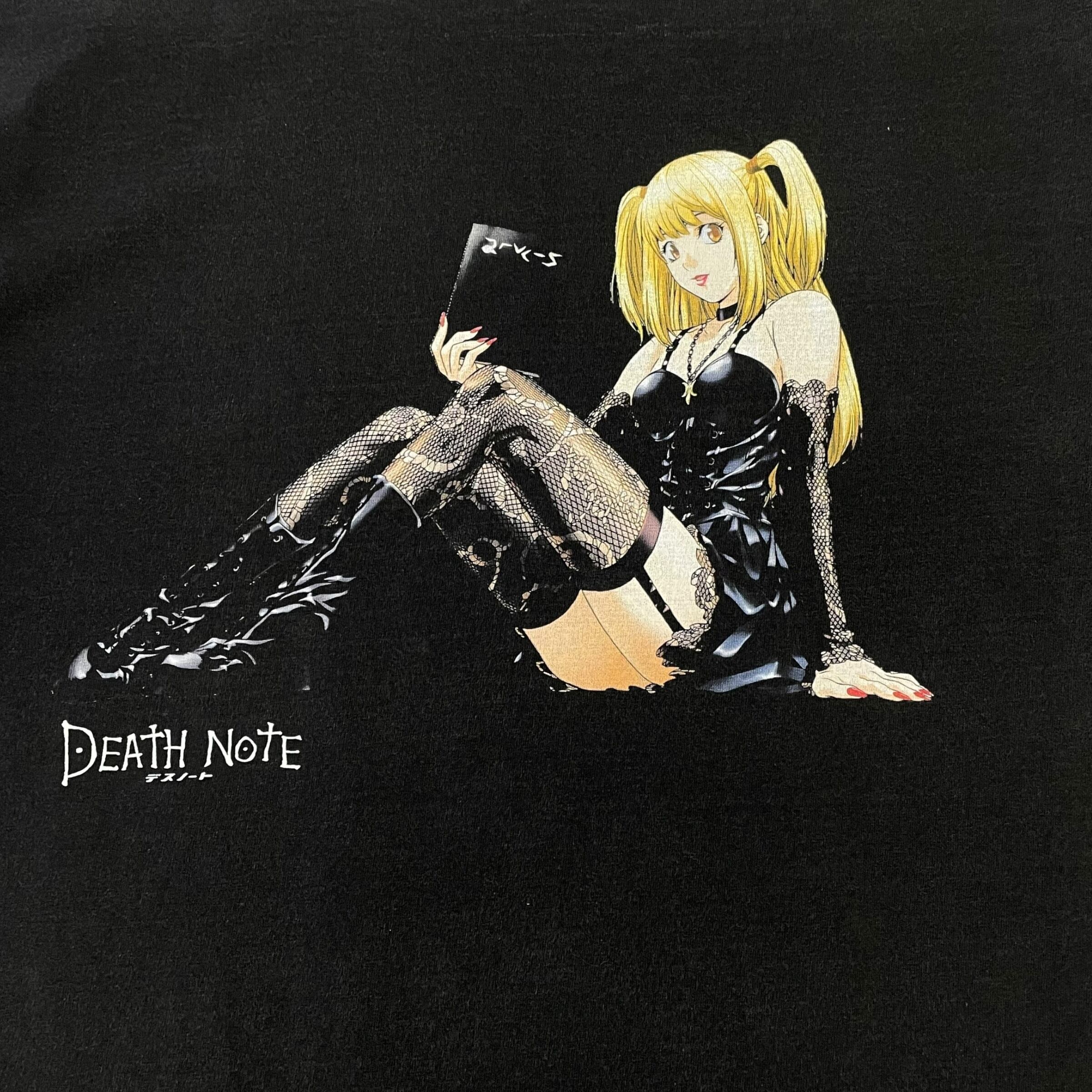 人気アニメ「DEATH NOTE(デスノート)」のキャラクター、弥海砂(ミサミサ)がフロントに、夜神月&Lもバックに大きくプリントされた存在感抜群の一着。フロント・バックともに豪華な両面プリント仕様。フェード感のあるブラックボディで、雰囲気も抜群。アニメ・マンガ好きにも、グラフィックTを探している人にもおすすめの1枚です。