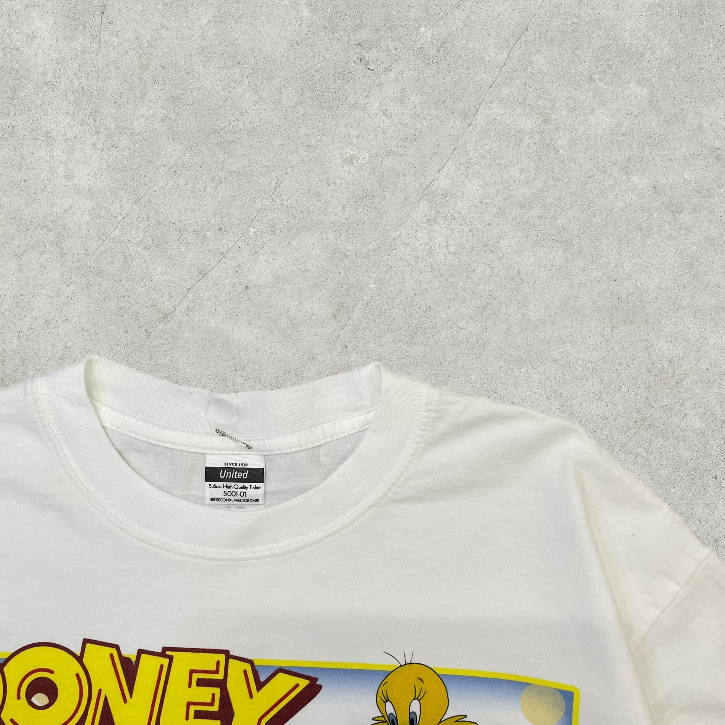 バッグス・バニー、トゥイーティー、ポーキー・ピッグ、マービン・ザ・マーシャン、タズなど人気キャラクターが大集合したルーニー・テューンズTシャツ。ポップな配色でストリートコーデにも相性抜群の一枚です!