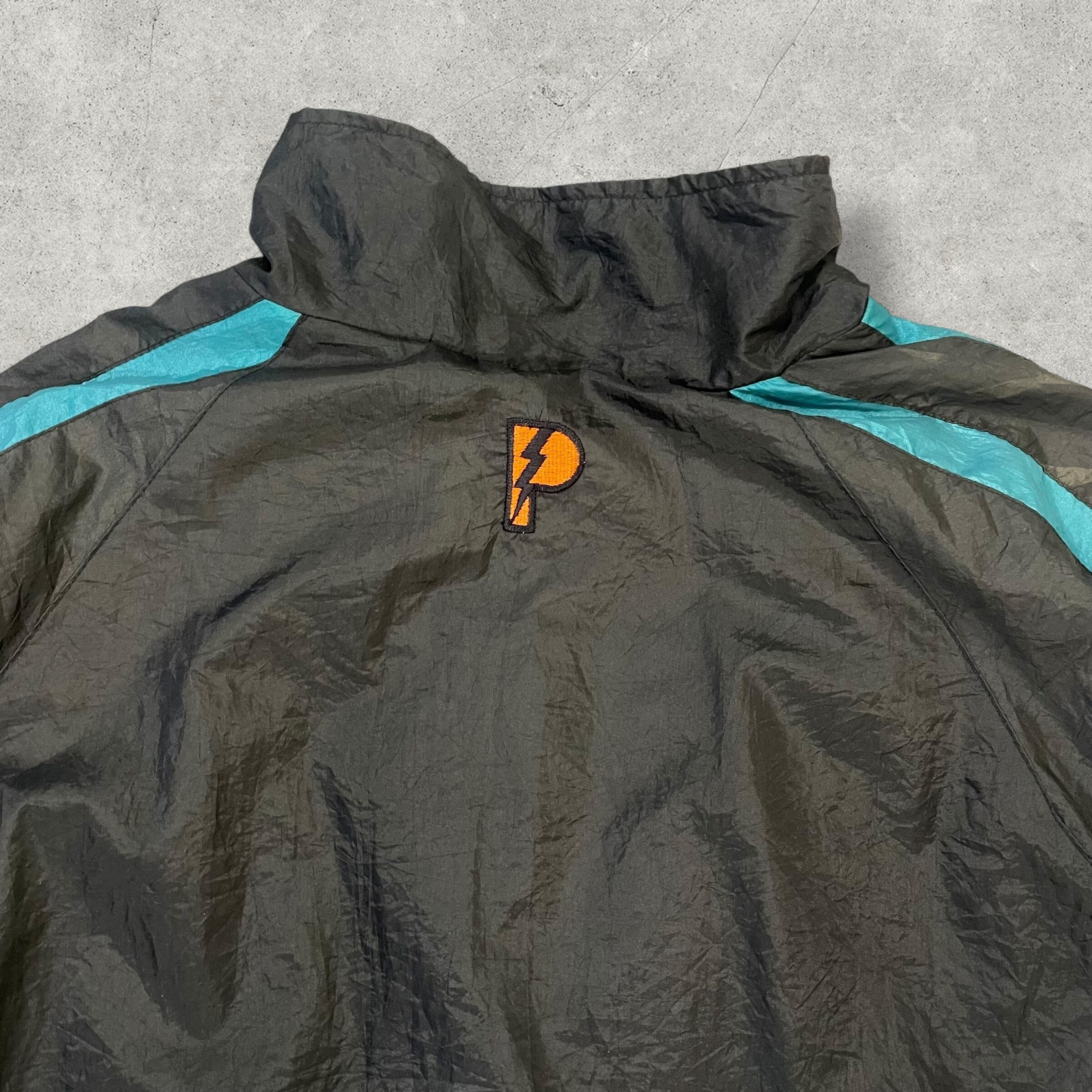 90’s Pro Player製のMiami Dolphinsナイロンジャケット。チームカラーのブラック×ターコイズに加え、フロントにはドルフィンズのロゴ刺繍、NFL EXPERIENCEの刺繍が施された存在感抜群の一着。バックや袖にもPro Playerのロゴ刺繍入りでファン必見のアイテムです。