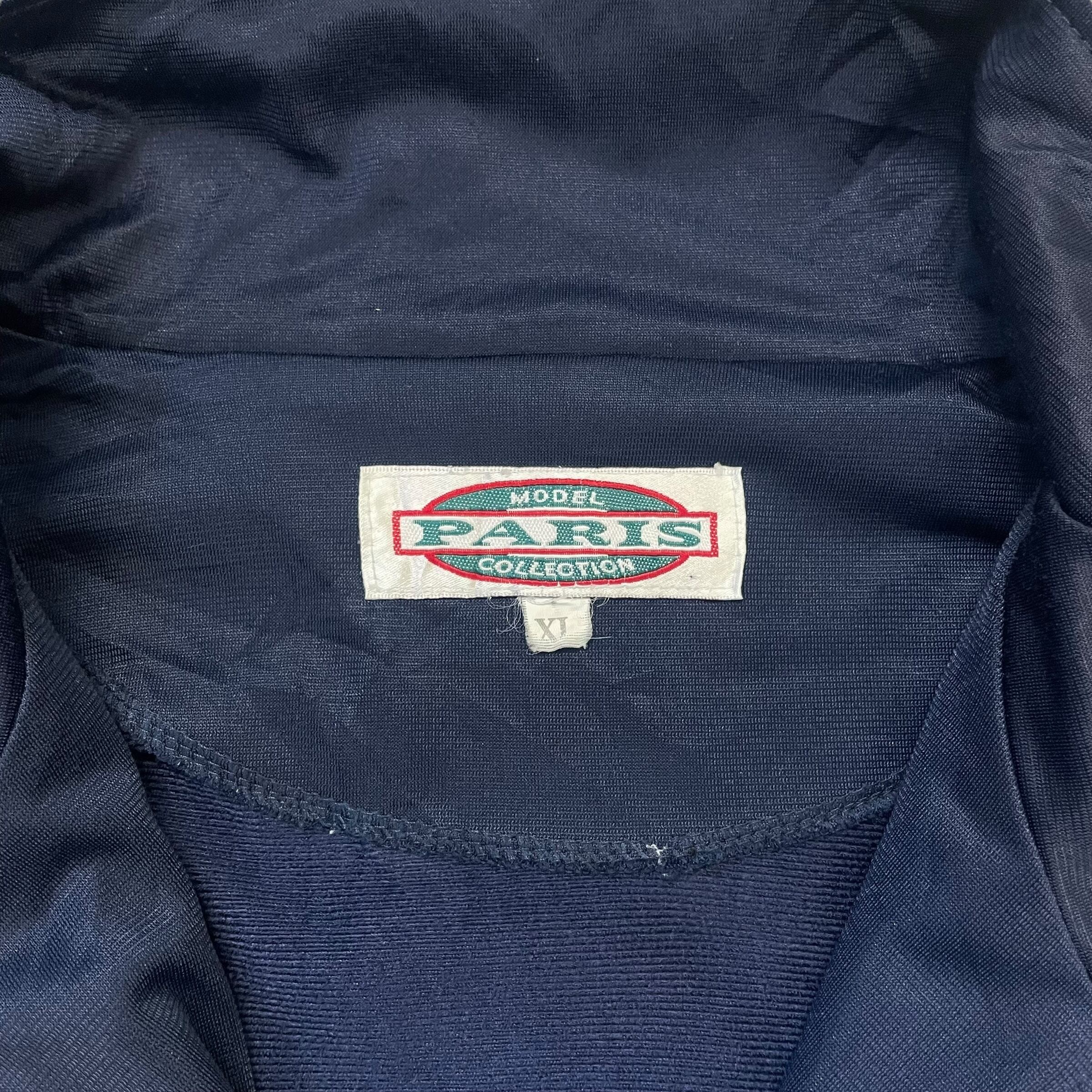 90’s感あふれるマルチカラー切替デザインのトラックジャケット。ネイビーをベースに、グリーンやレッド、ホワイトの切替がアクセントになった一着。胸元の「Sport」刺繍ロゴが程よい存在感を演出し、古着らしいレトロな雰囲気を楽しめます。ストリートスタイルやスポーツMIXコーデにおすすめです。