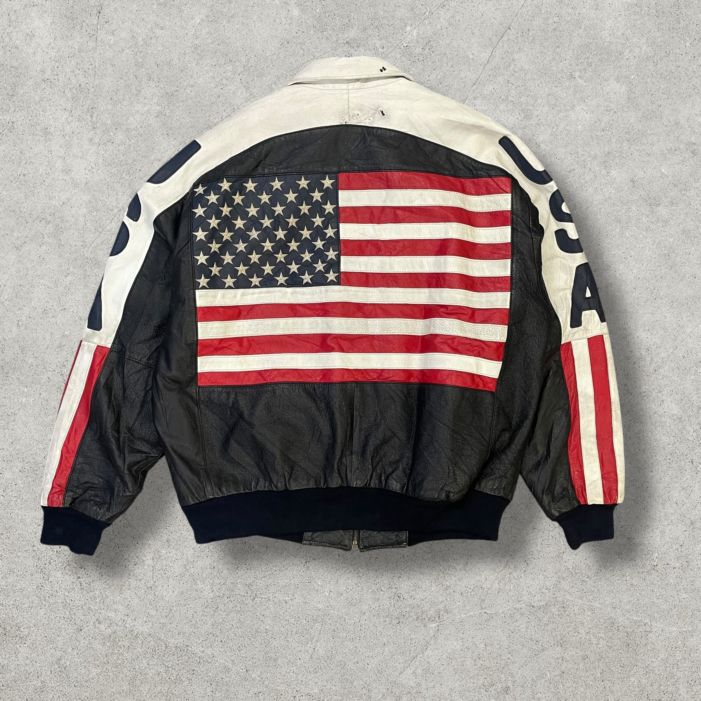 90’s USA Flag Leather Jacket