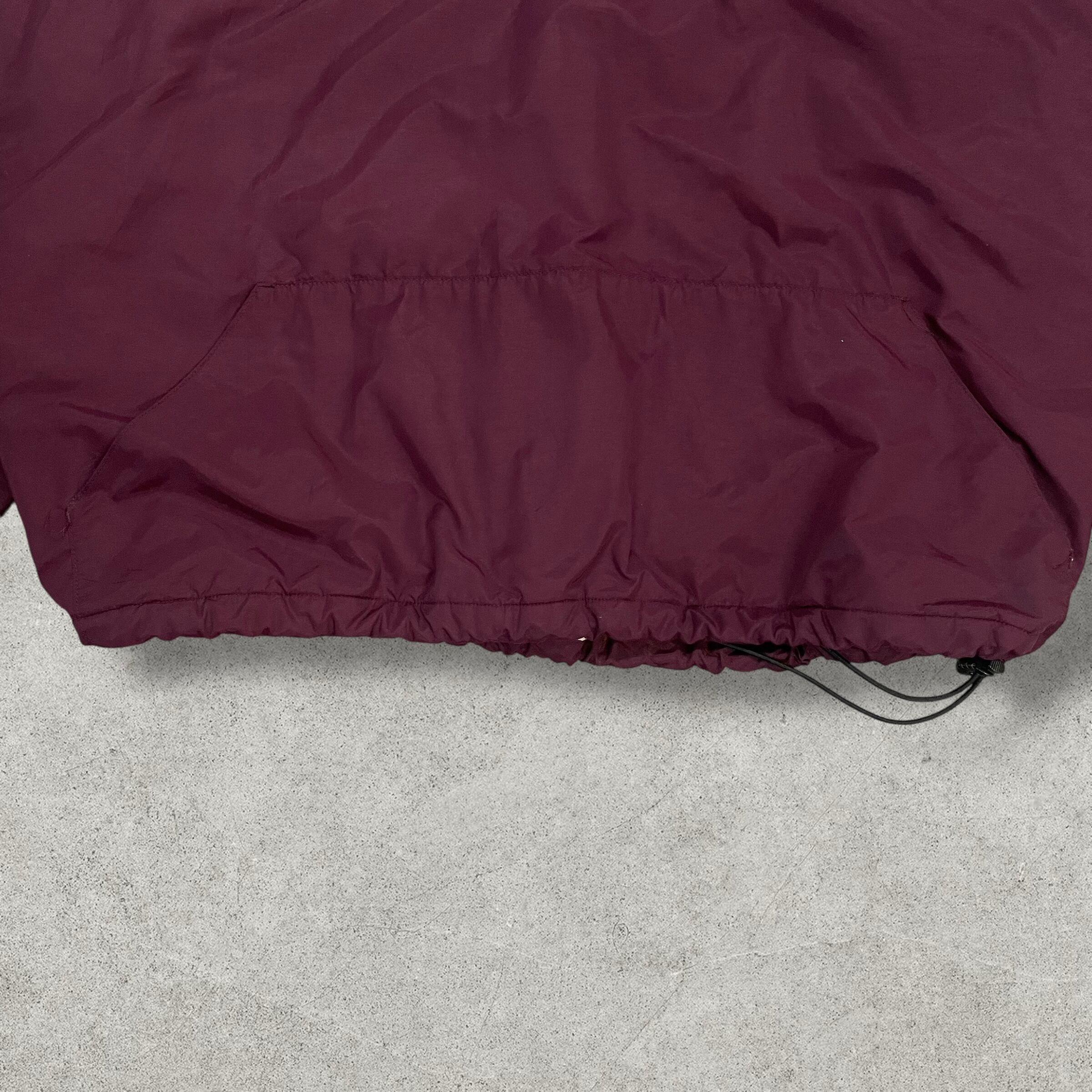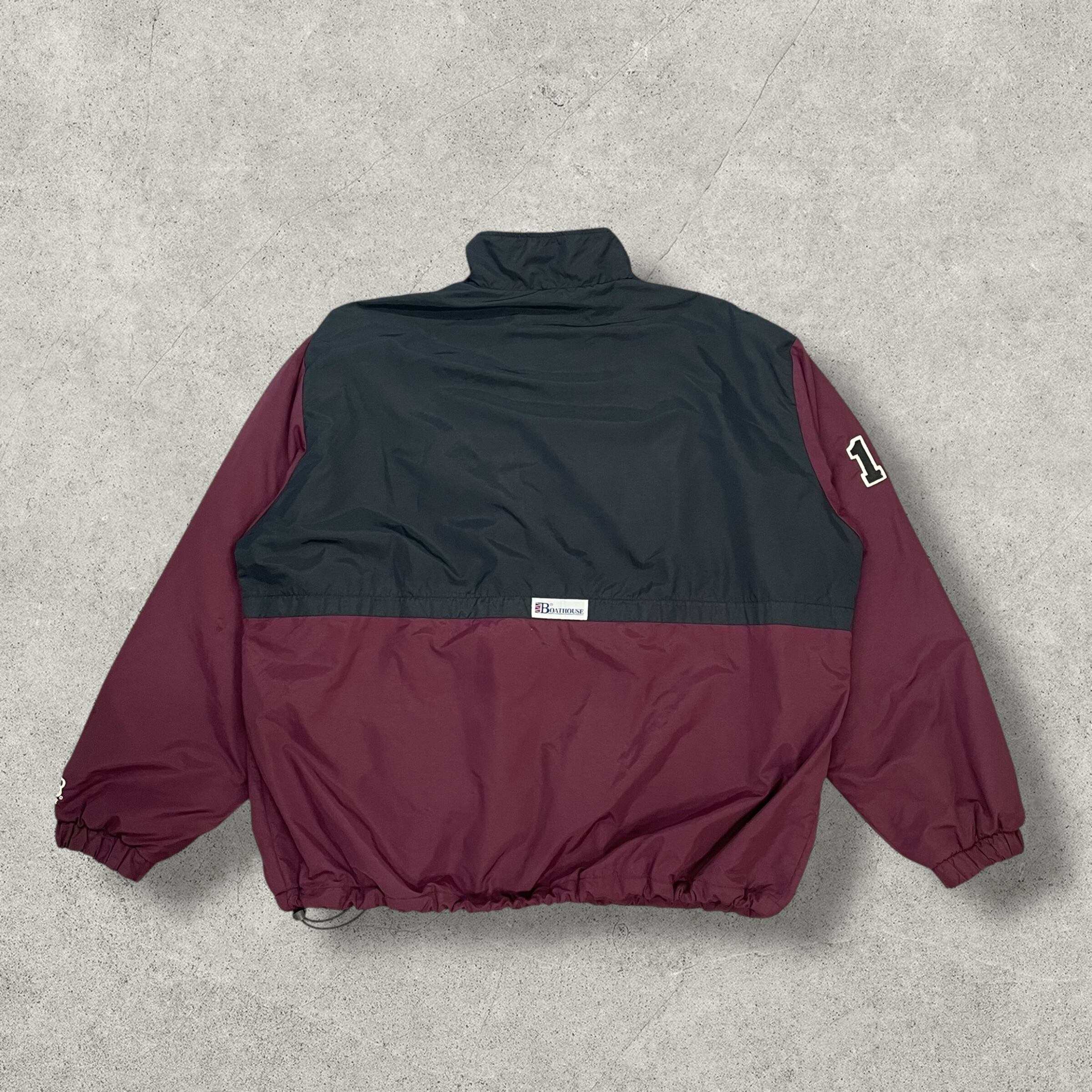 チームユニフォーム仕様の“North Haven Hockey”ナイロンハーフジップジャケット。フロントにはネーム刺繍「Tony」とチームロゴ、袖にはナンバリング「15」が入ったスポーティーなデザイン。深みのあるバーガンディ×ブラックの切り替えカラーが洒落感を演出。内側はスウェットライナー付きで、軽い着心地ながら保温性も確保。アメリカ製Boathouseボディ使用の本格チームウェアです。