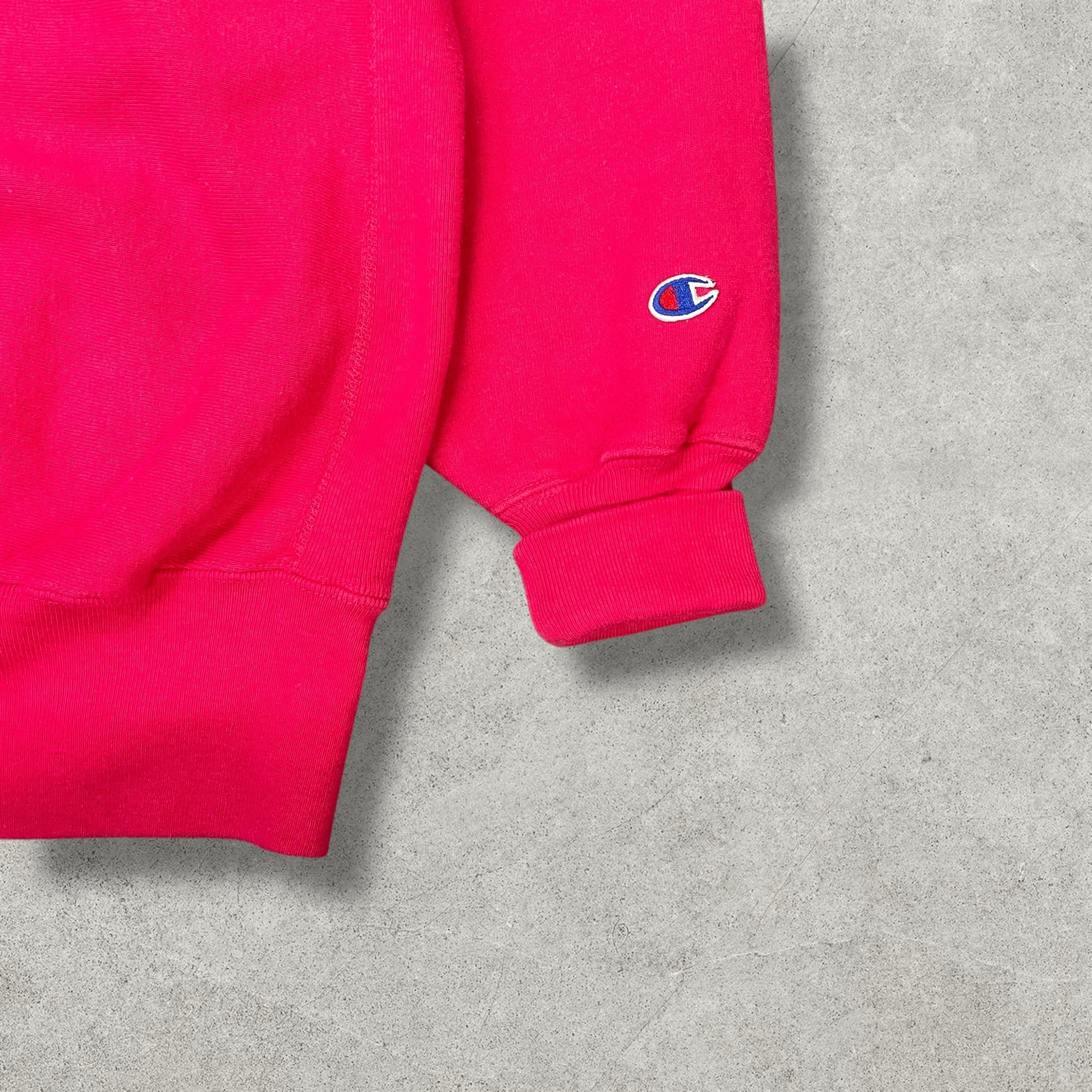 90’s Champion リバースウィーブ、UC DAVIS刺繍デザイン。鮮やかなピンクレッドのカラーが目を惹く一枚。程よくフェードした風合いとしっかりしたリブの締まりが残る、雰囲気抜群のスウェット。アメリカ製ボディ特有の肉厚なコットン生地で、1枚でも存在感◎