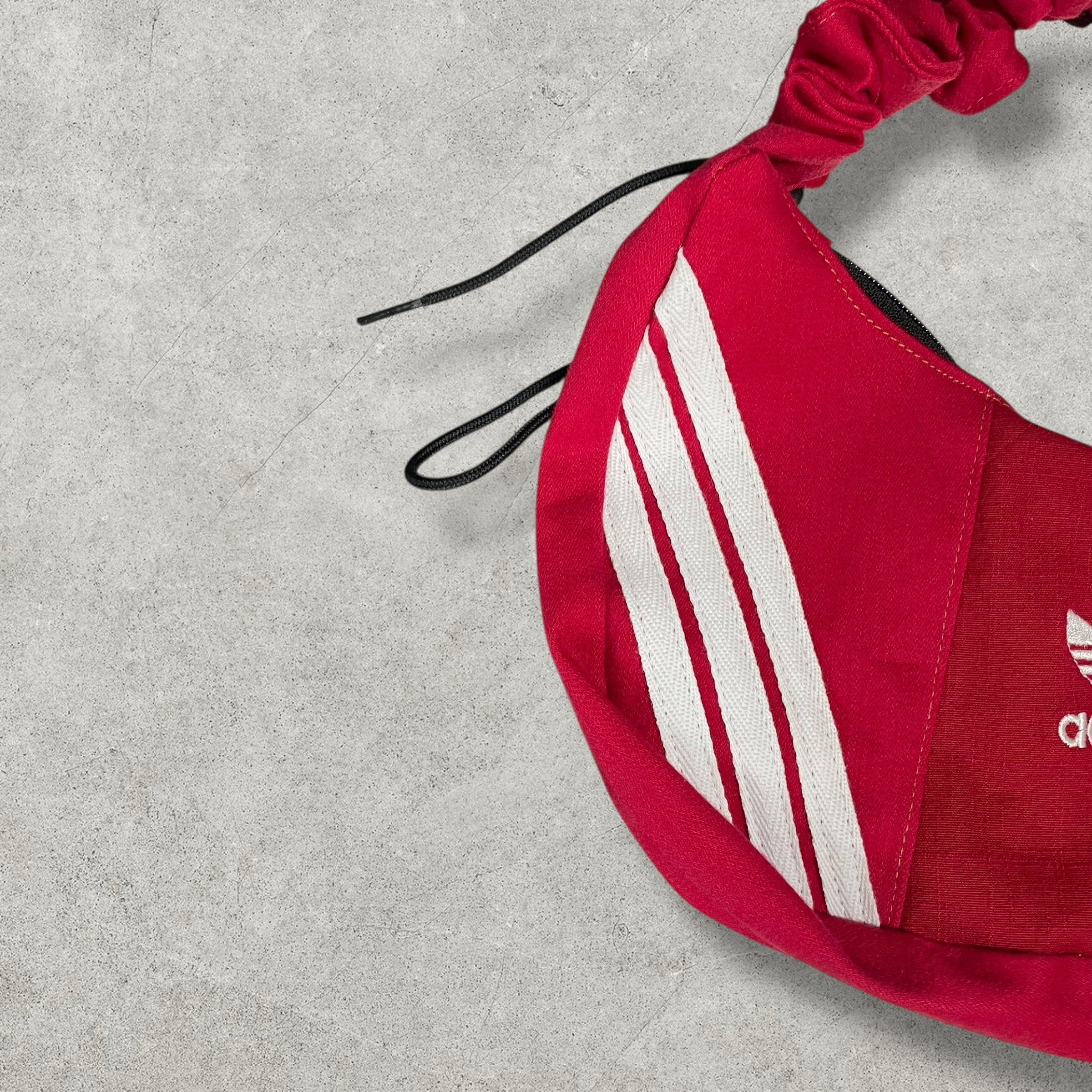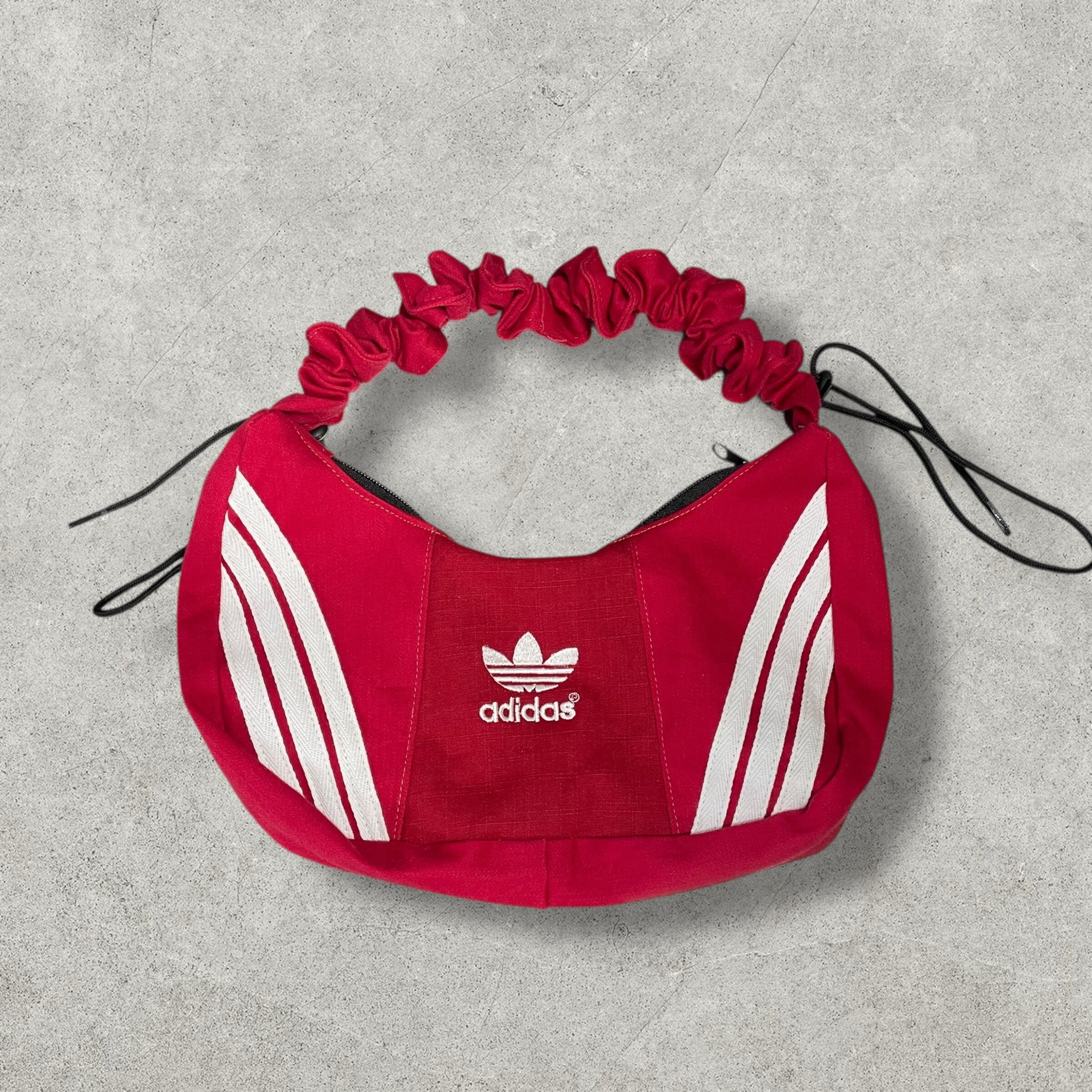 adidasトレフォイルロゴが入ったショルダーバッグ。ビビッドなレッドカラーとホワイトのスリーストライプが映える、存在感抜群の一点。ギャザー仕様のショルダーハンドルがトレンド感をプラスし、コーデのアクセントにもぴったり。小ぶりながらマチ付きで収納力も◎。