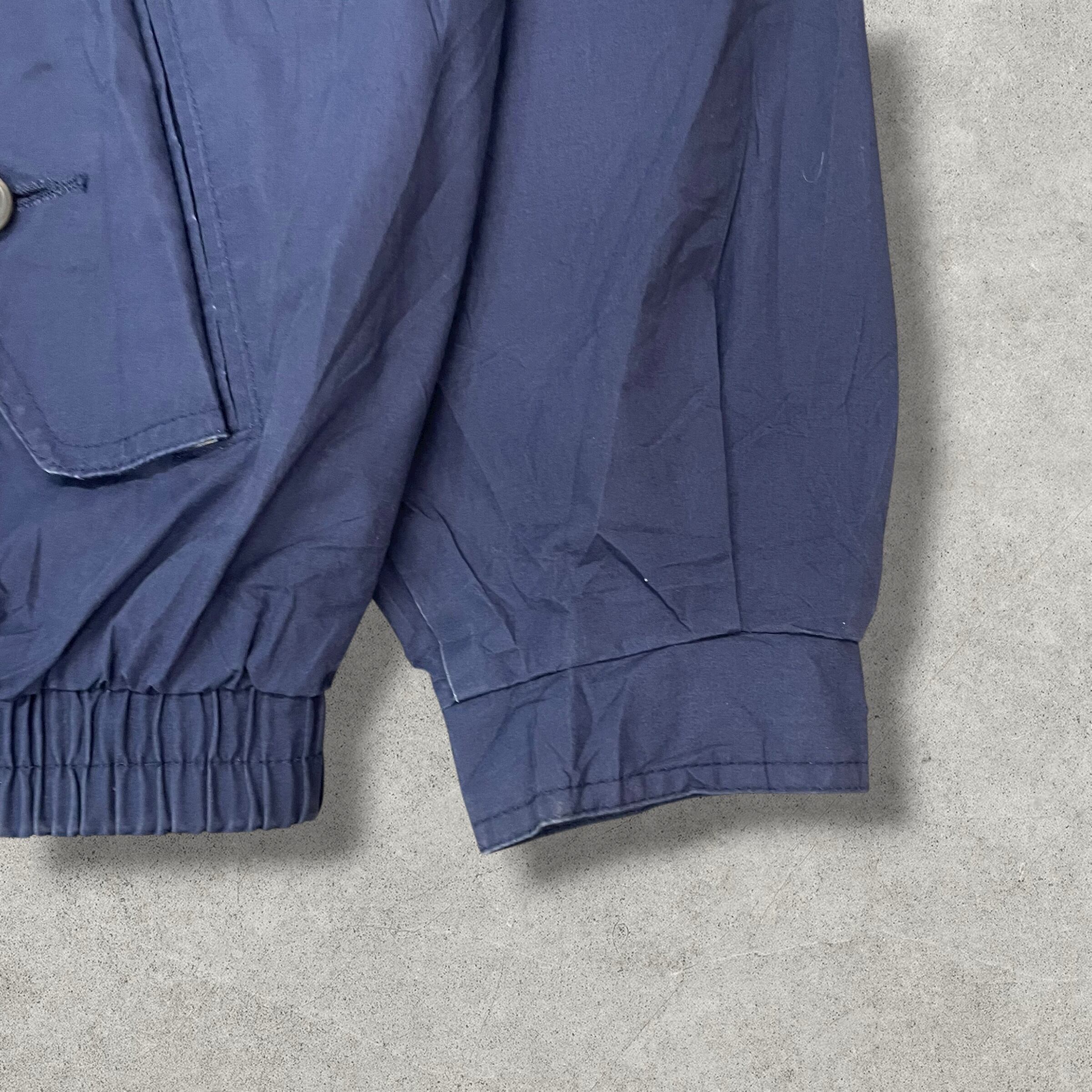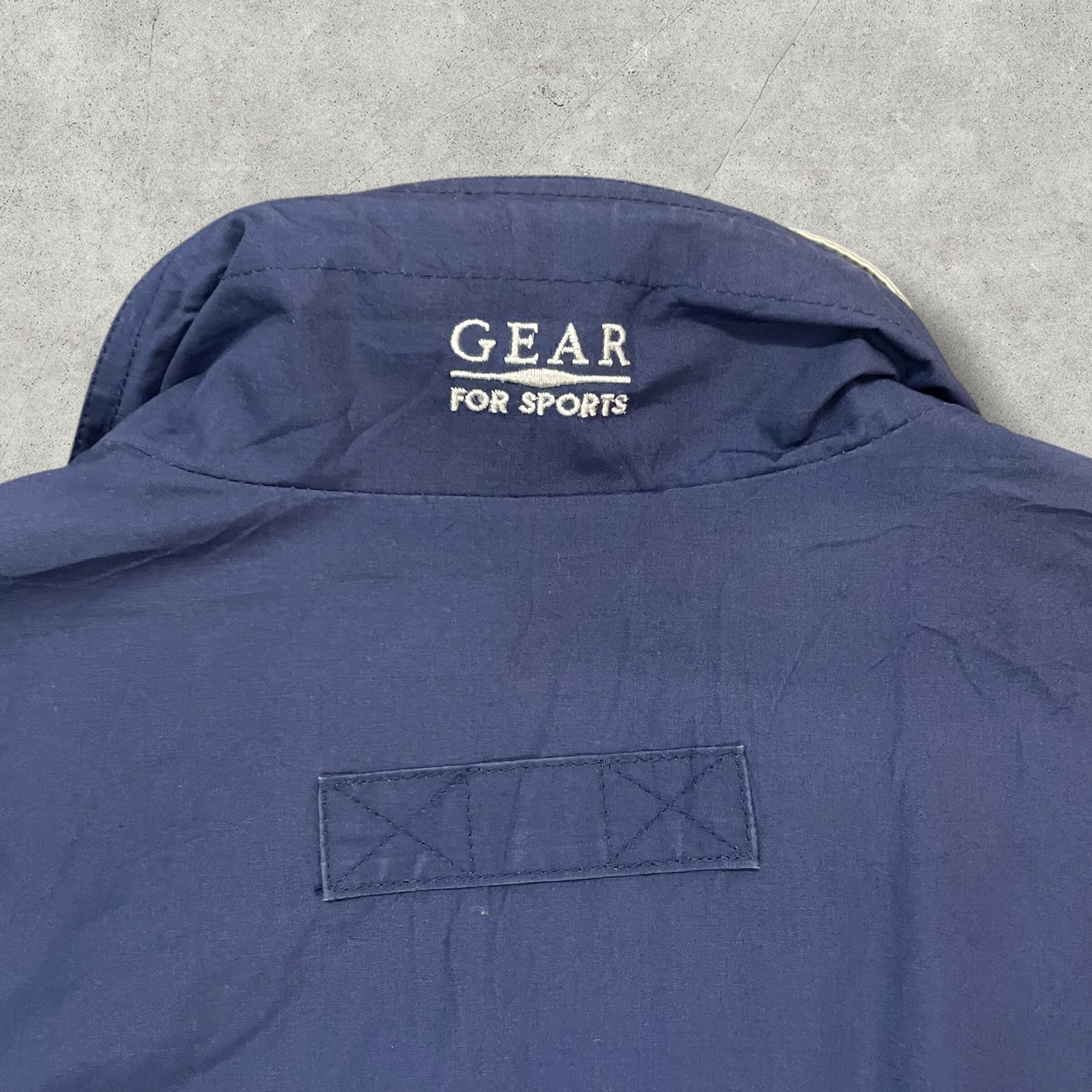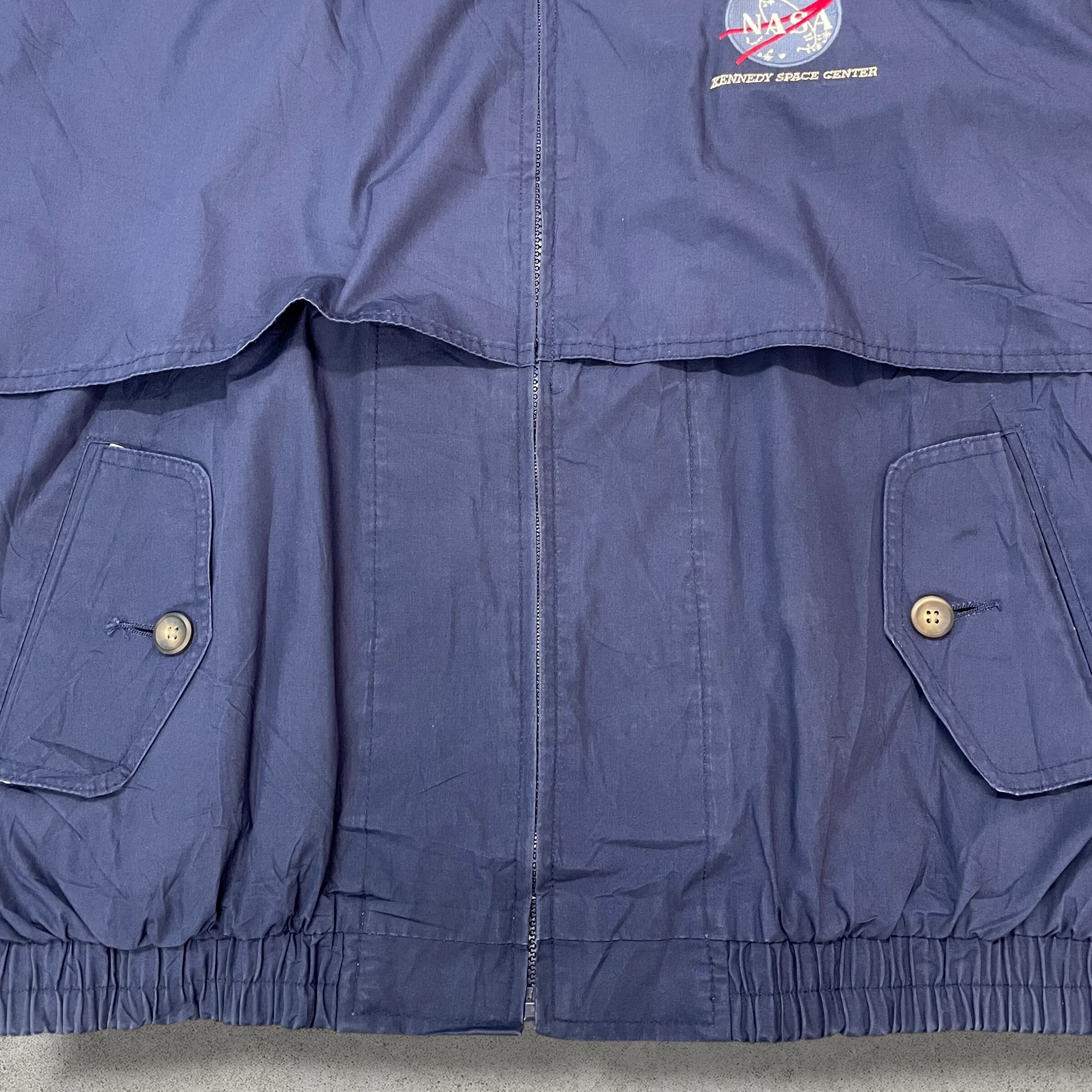 アメリカのスポーツウェアブランド「GEAR FOR SPORTS」製のNASAロゴ刺繍入りナイロンジャケット。フロントには“KENNEDY SPACE CENTER”の文字が入ったNASAワッペンが施され、宇宙開発機関の公式ユニフォームを彷彿とさせるクールな一着。ネイビーボディにホワイトの切り替えカラーが映え、シンプルながら存在感のあるデザインです。軽量ナイロン素材で春秋に最適。裾と袖口のゴムリブ仕様で丸みのあるシルエットが楽しめる、ヴィンテージライクなアイテム。