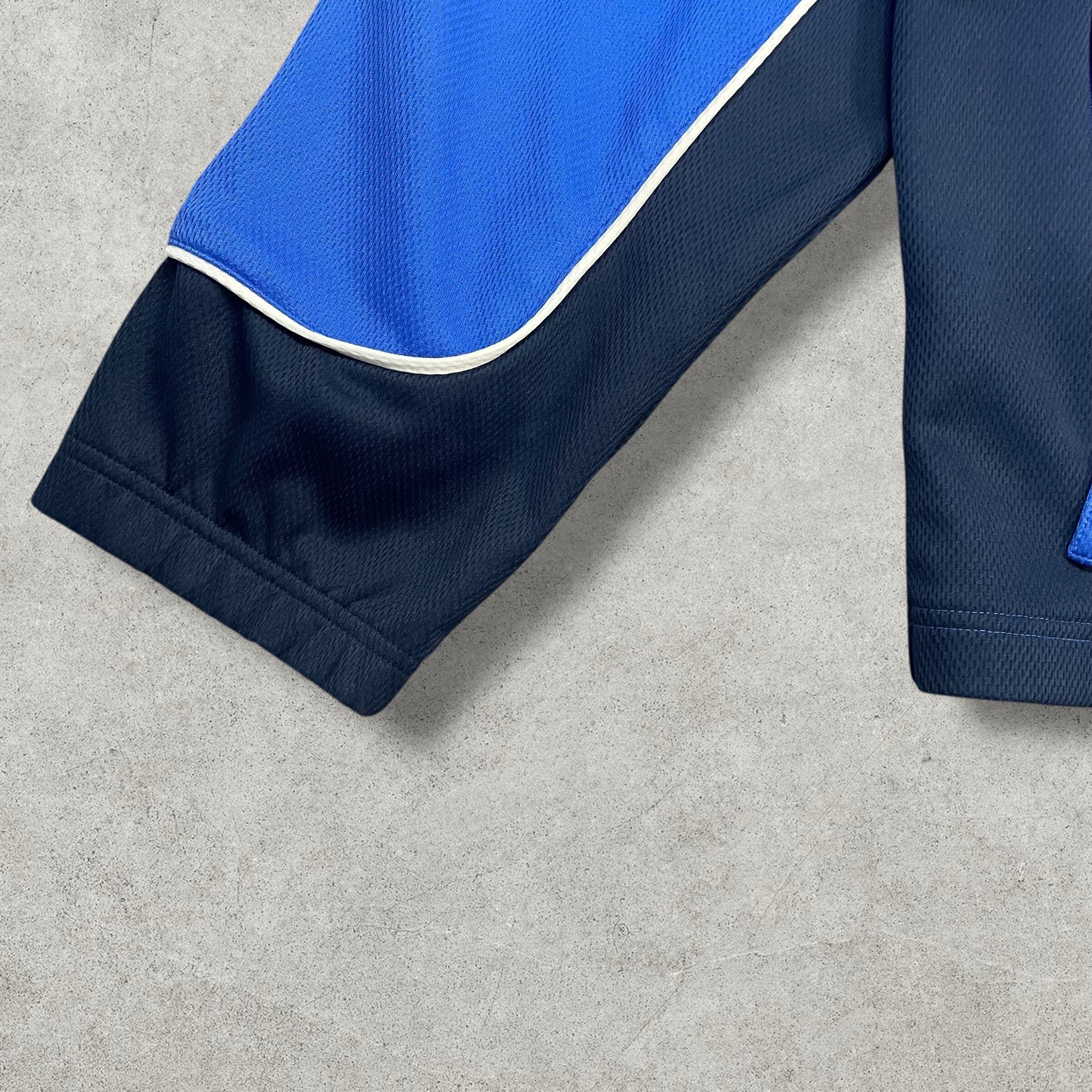 鮮やかなブルーにホワイトのパイピングが映えるNIKEのトラックジャケット。スポーツ感のあるデザインながら、ストリートにも相性の良い万能な配色です。軽量で動きやすく、デイリーから運動時まで幅広く活躍する使い勝手の良い一枚です。