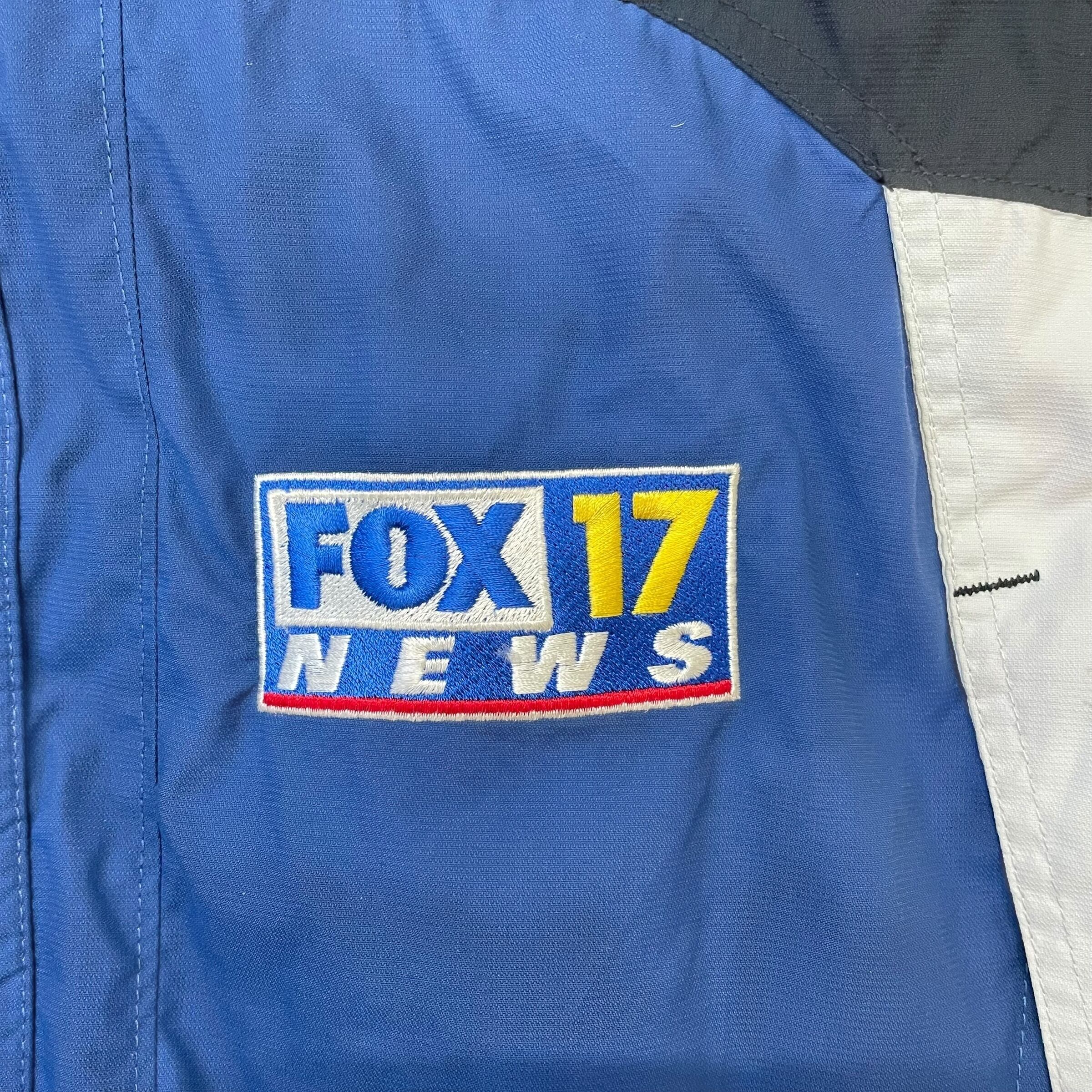 FOX17 NEWSの刺繍ロゴが存在感抜群のコロンビアジャケット。ブルー×ブラック×ホワイトの切り替えデザインがスポーティーで、ニュースクルーのギアらしい雰囲気が逆に今っぽい一点。INTERCHANGEシステム搭載で機能性も高く、アウトドアにもデイリーにも活躍する万能アウター。