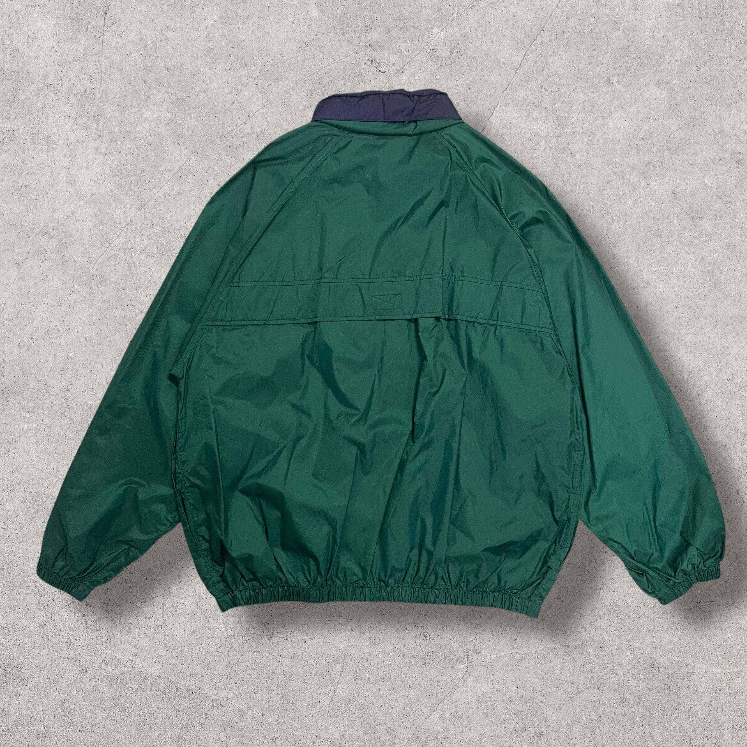 深みのあるグリーンボディに、ネイビーのスタンドカラー切り替え。
